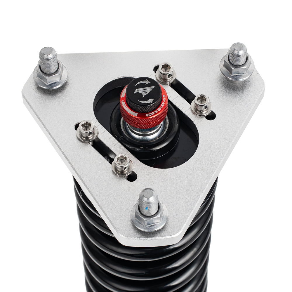 Note: This coilover kit is designed to lower your car by 1"-1.5" compared to the factory height even at its maximum setting. Please confirm this suits your needs before purchasing.