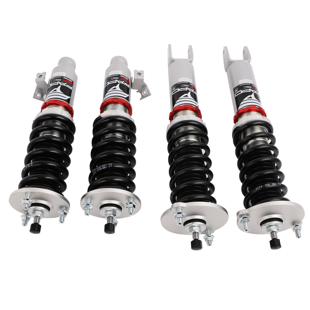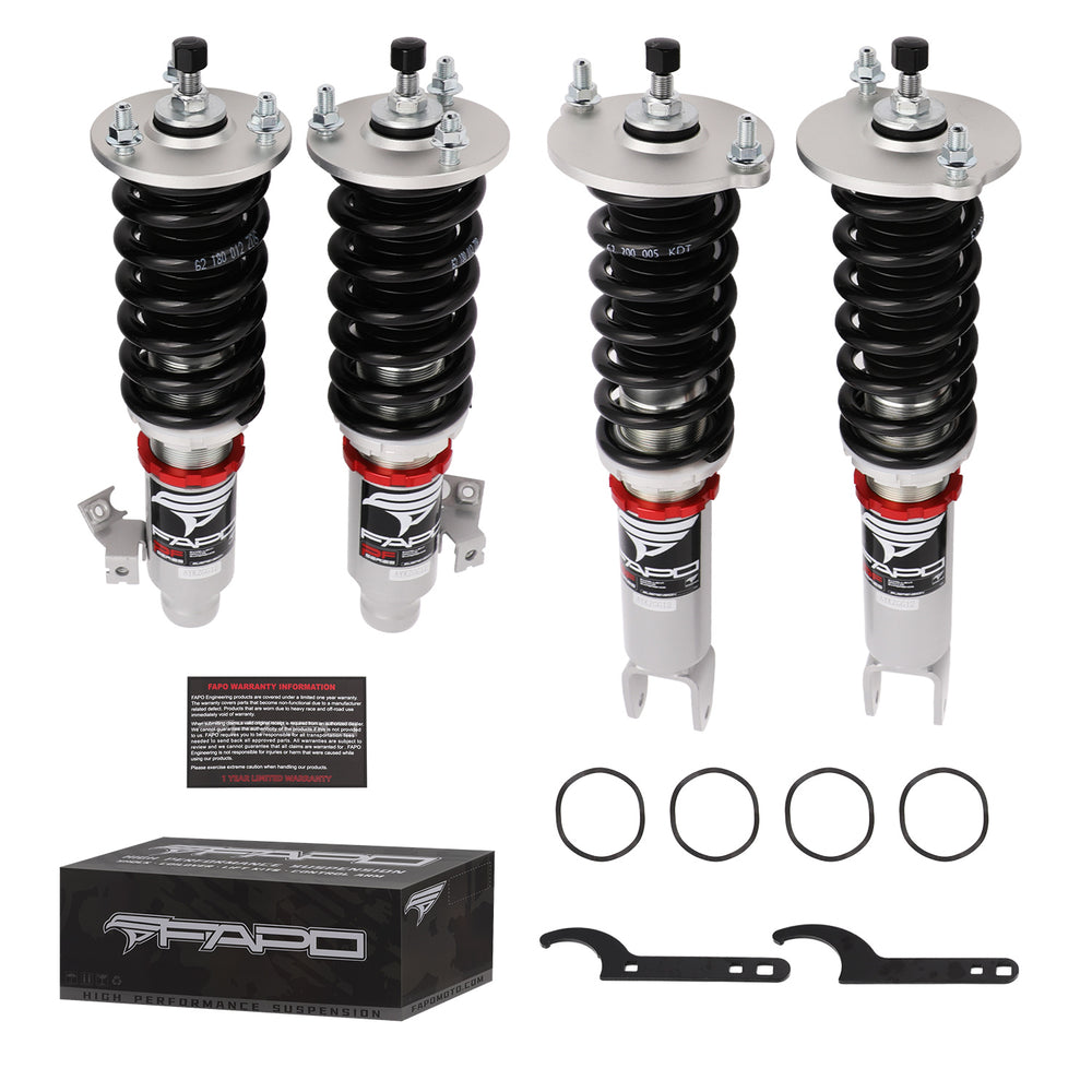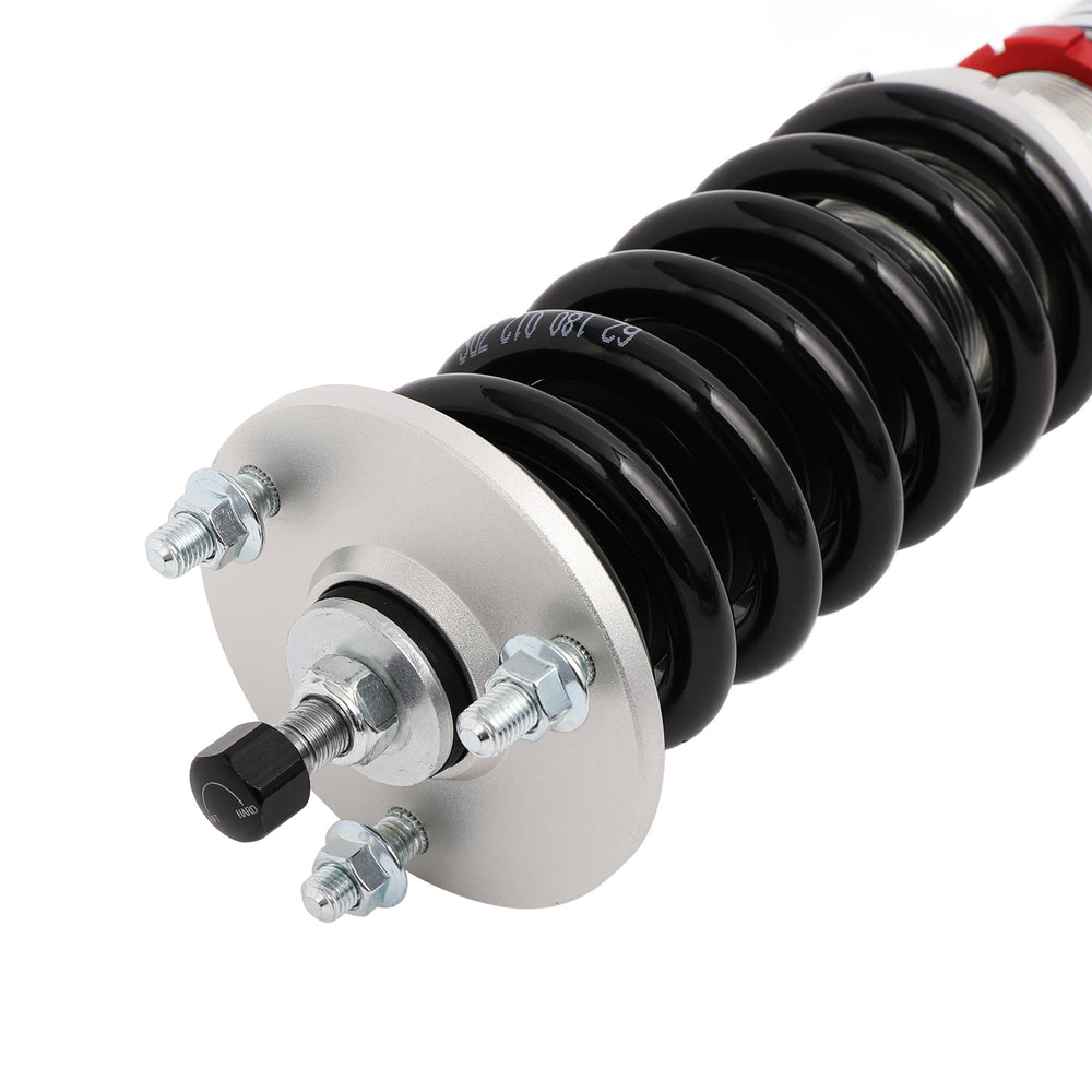 Note: This coilover kit is designed to lower your car by 1"-1.5" compared to the factory height even at its maximum setting. Please confirm this suits your needs before purchasing.