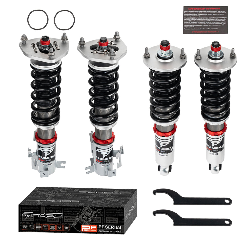 Note: This coilover kit is designed to lower your car by 1¨-1.5" compared to the factory height, even at its maximum setting. Please confirm this suits your needs before purchasing.