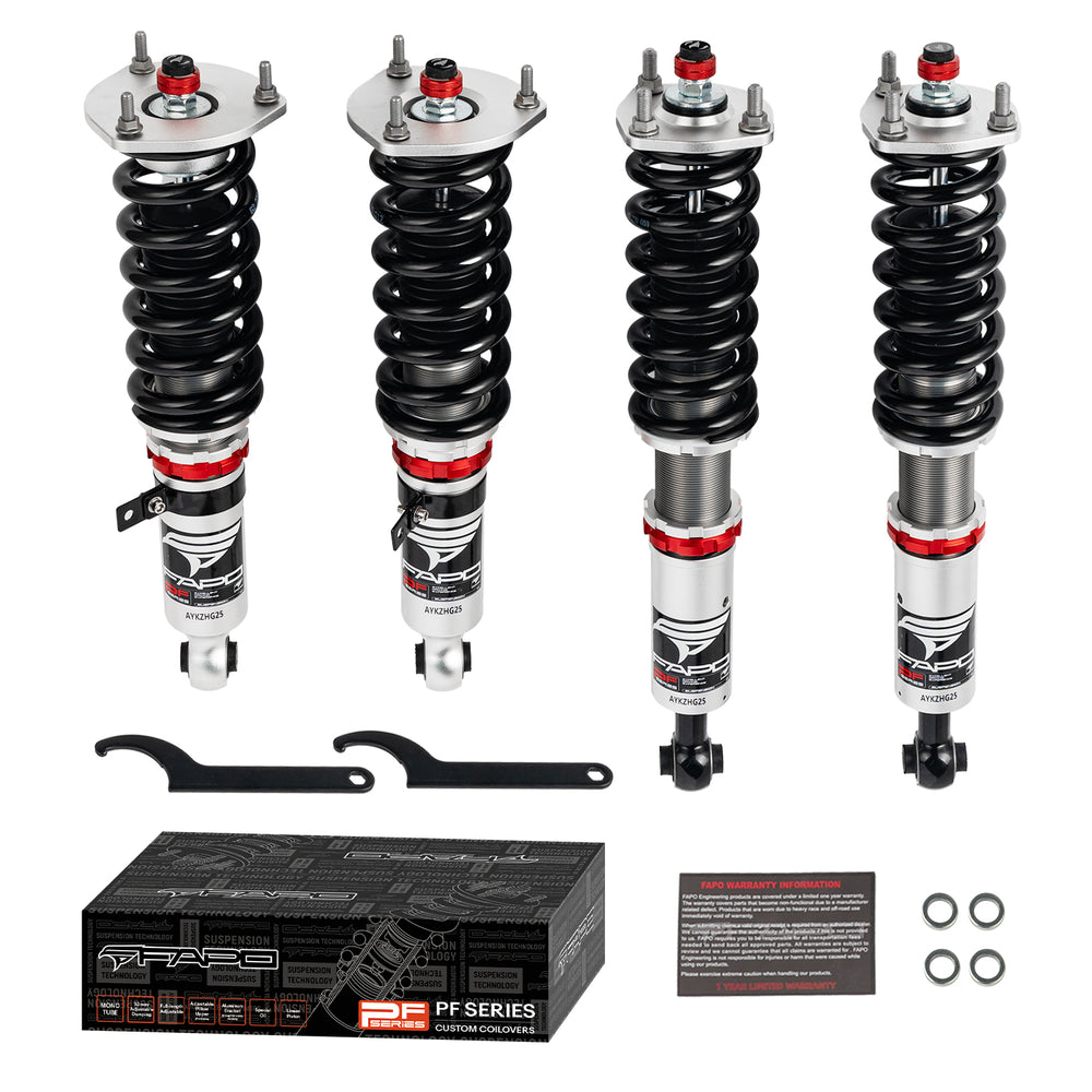 Note: This coilover kit is designed to lower your car by 1¨-1.5" compared to the factory height, even at its maximum setting. Please confirm this suits your needs before purchasing.
