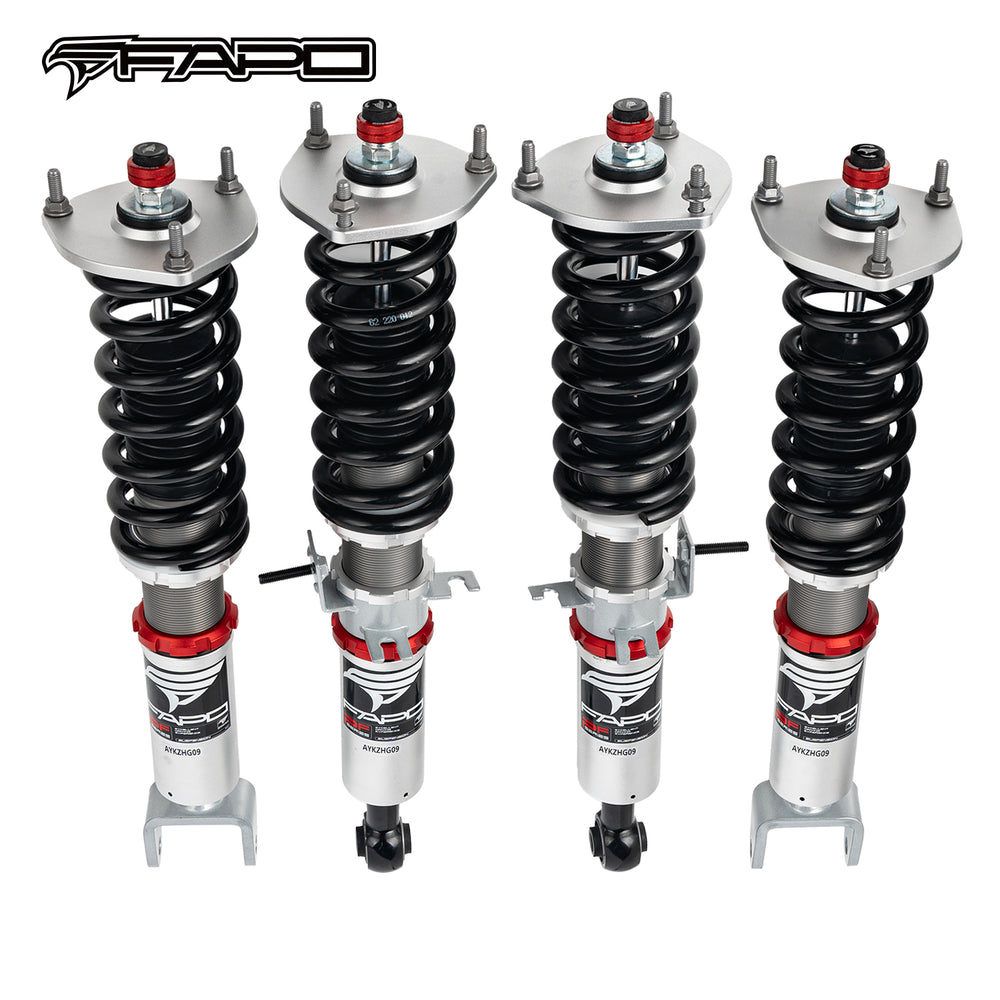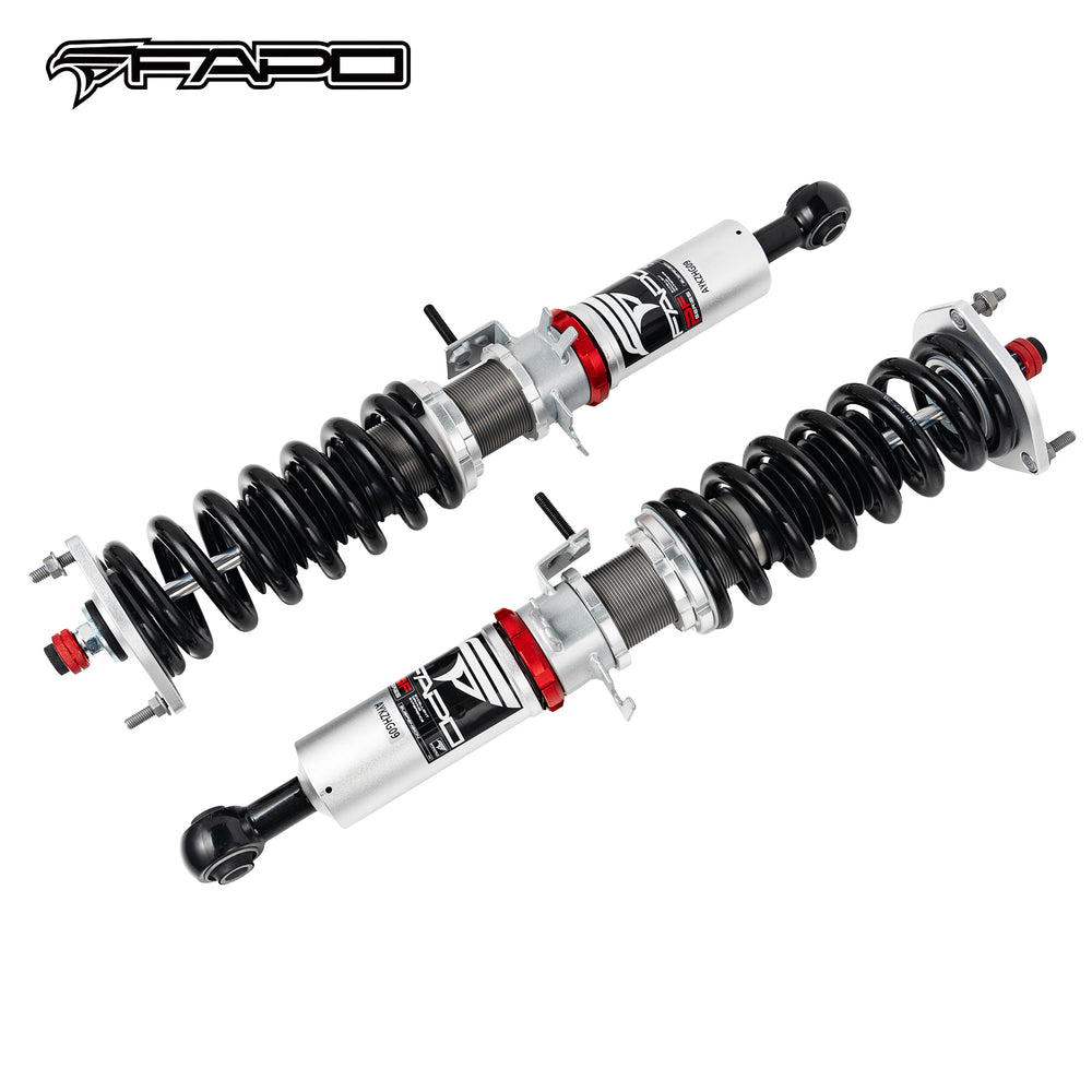 Note: This coilover kit is designed to lower your car by 1"-1.5" compared to the factory height, even at its maximum setting. Please confirm this suits your needs before purchasing.