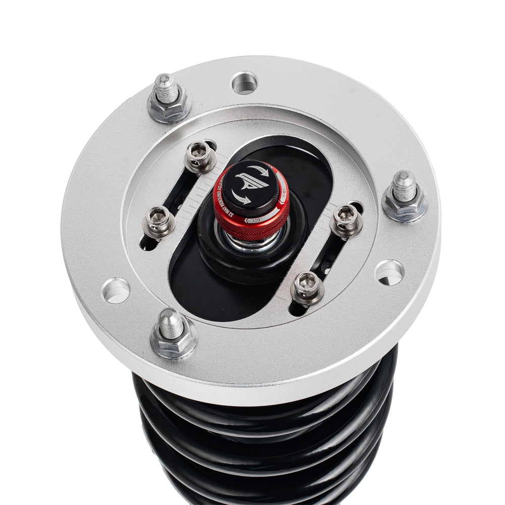 Note: This coilover kit is designed to lower your car by 1"-1.5" compared to the factory height, even at its maximum setting. Please confirm this suits your needs before purchasing.