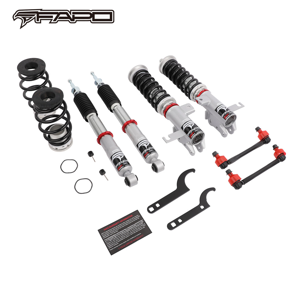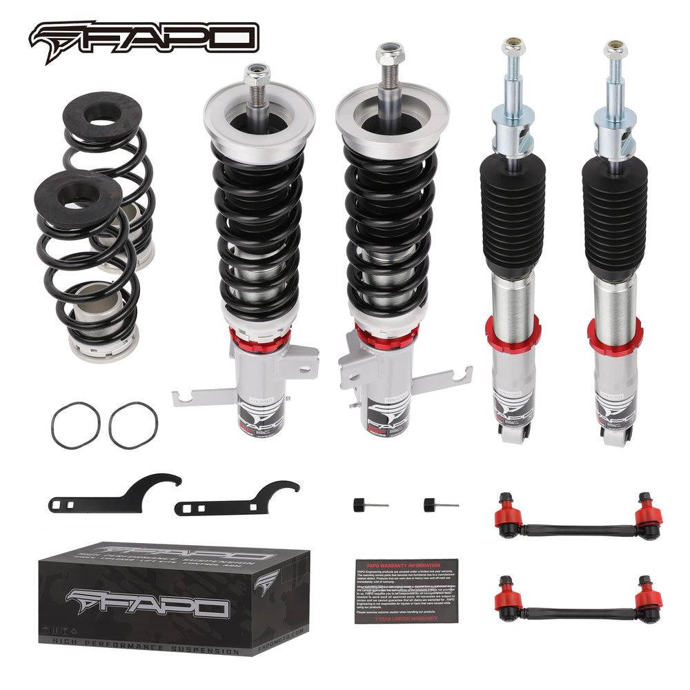 Note: This coilover kit is designed to lower your car by 1"-1.5" compared to the factory height, even at its maximum setting. Please confirm this suits your needs before purchasing.