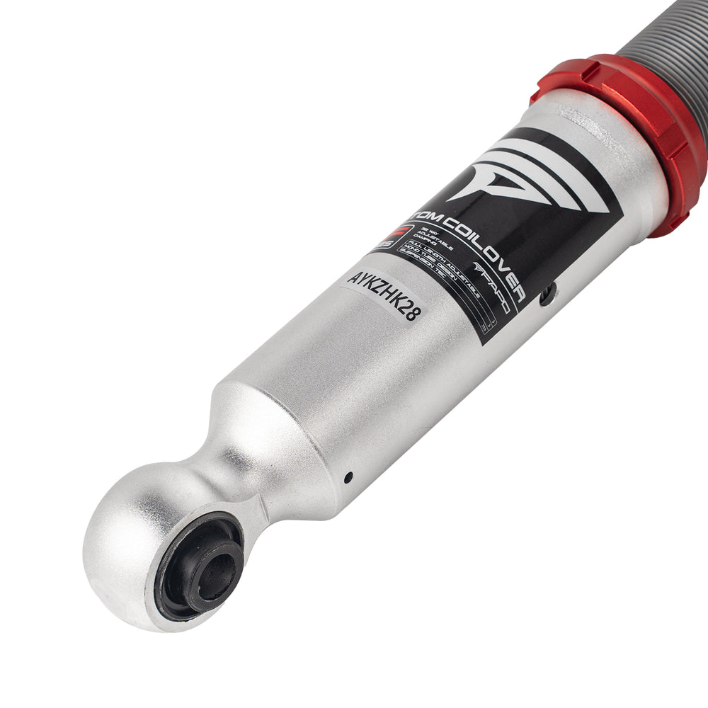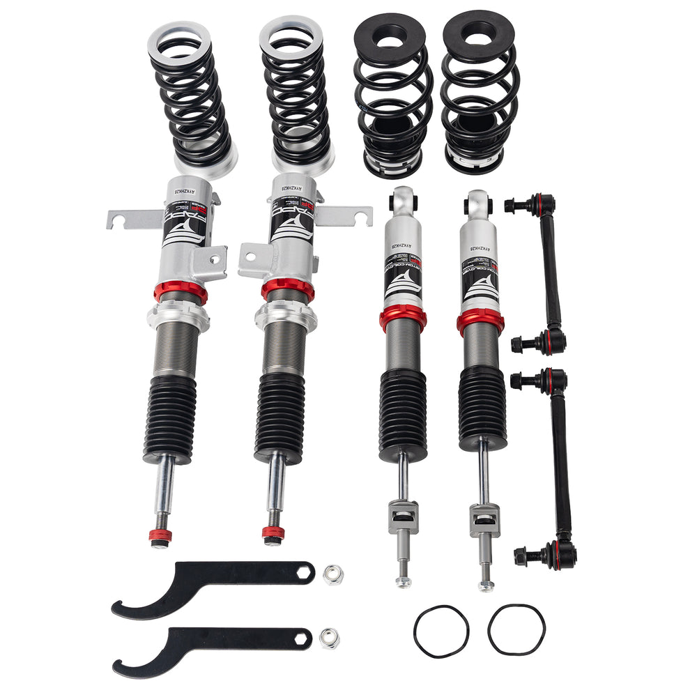 Note: This coilover kit is designed to lower your car by 1"-1.5" compared to the factory height, even at its maximum setting. Please confirm this suits your needs before purchasing.