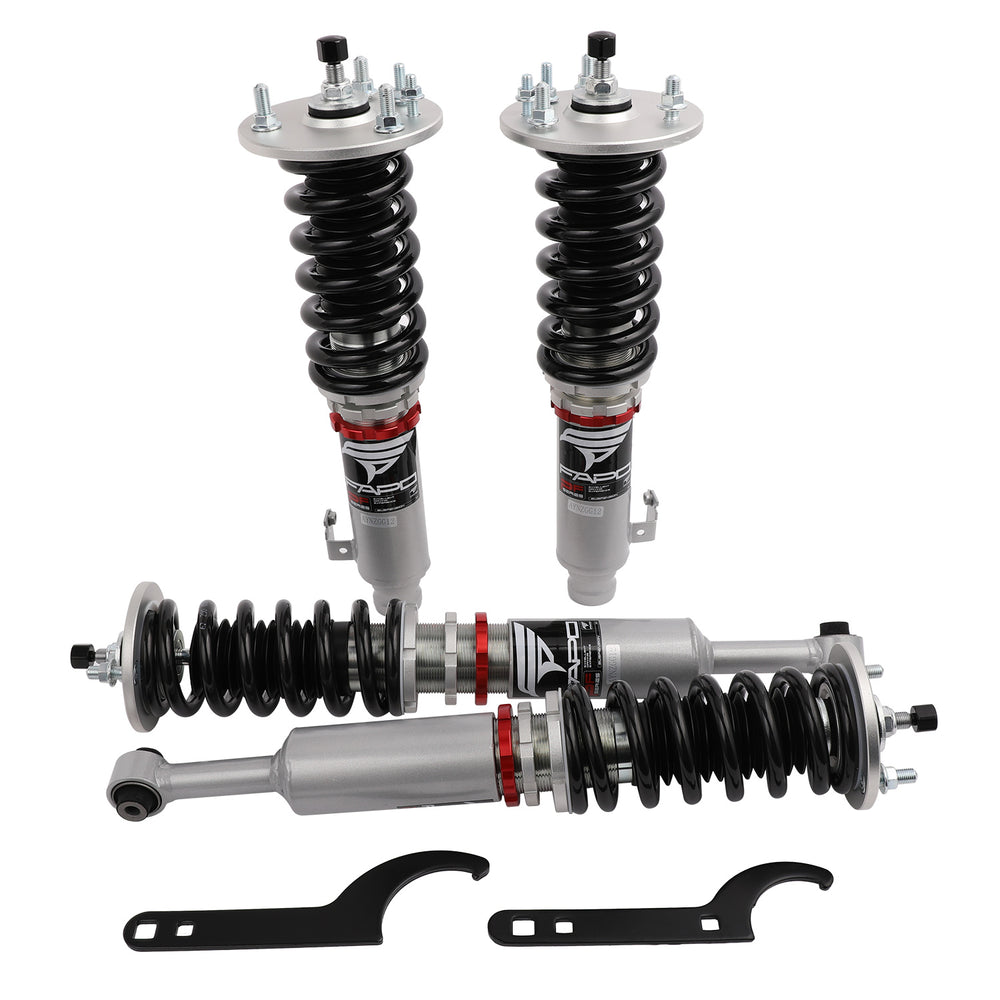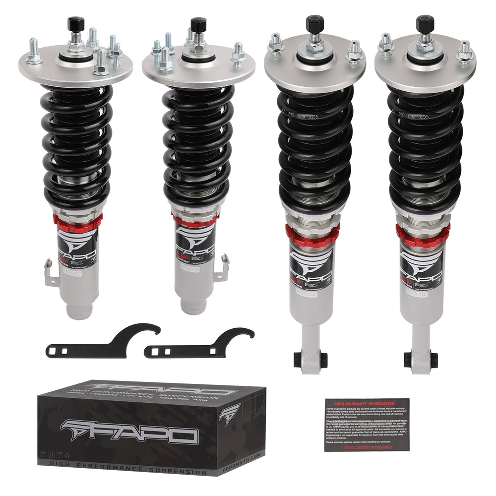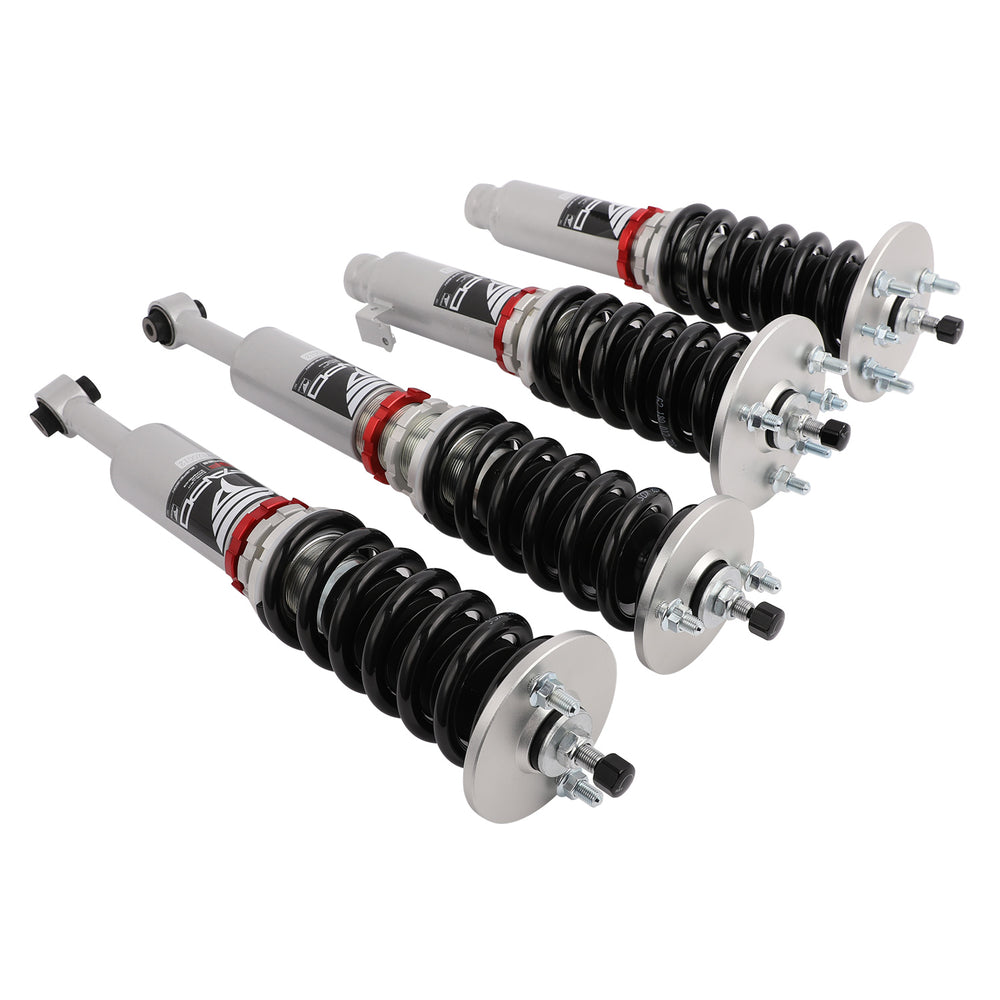 Note: This coilover kit is designed to lower your car by 1"-1.5" compared to the factory height, even at its maximum setting. Please confirm this suits your needs before purchasing.