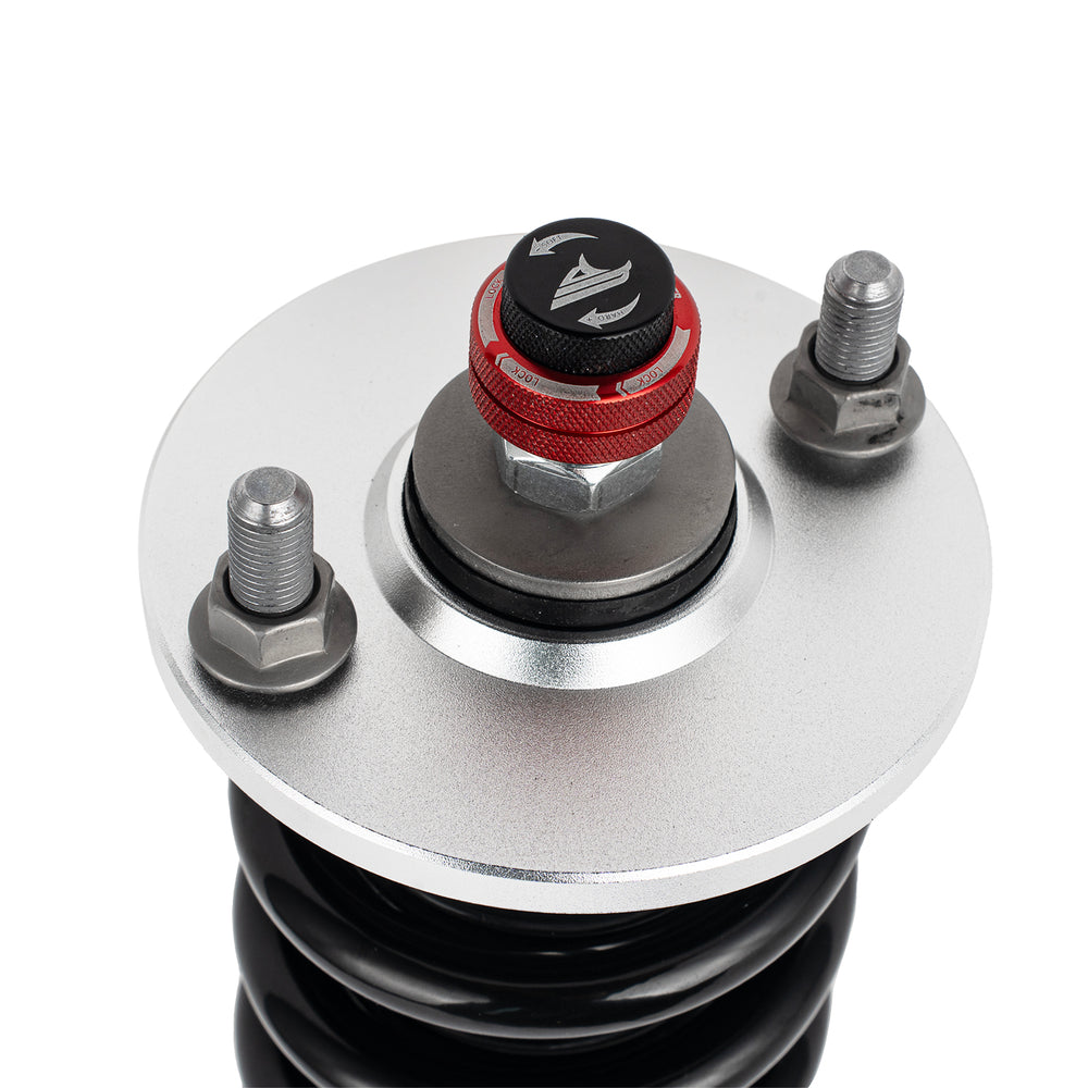 Note: This coilover kit is designed to lower your car by 1"-1.5" compared to the factory height, even at its maximum setting. Please confirm this suits your needs before purchasing.