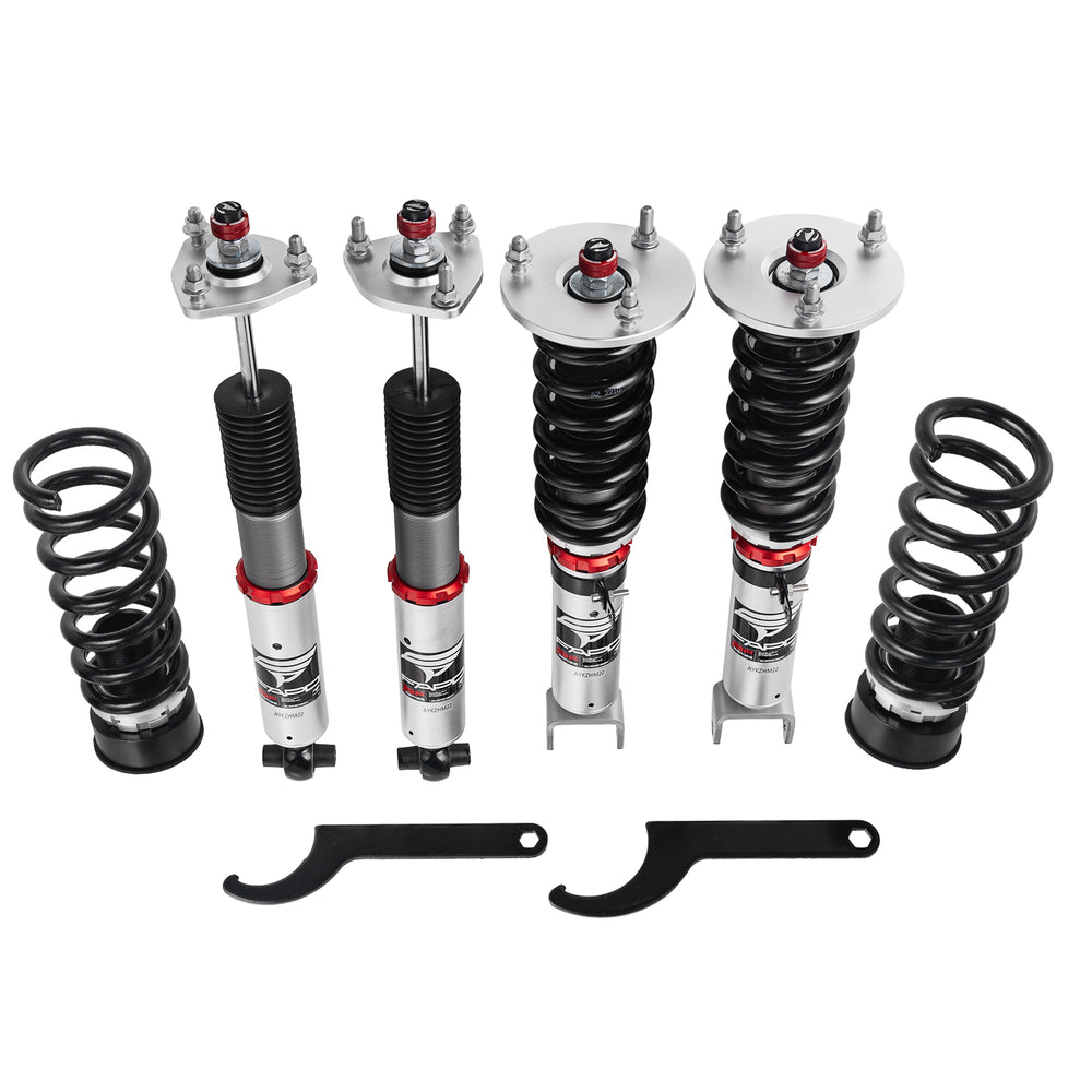 Note: This coilover kit is designed to lower your car by 1"-1.5" compared to the factory height, even at its maximum setting. Please confirm this suits your needs before purchasing.