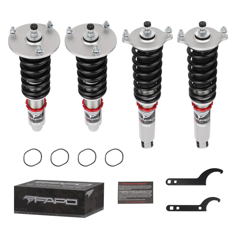 Note: This coilover kit is designed to lower your car by 1¨- 1.5" compared to the factory height, even at its maximum setting. Please confirm this suits your needs before purchasing.