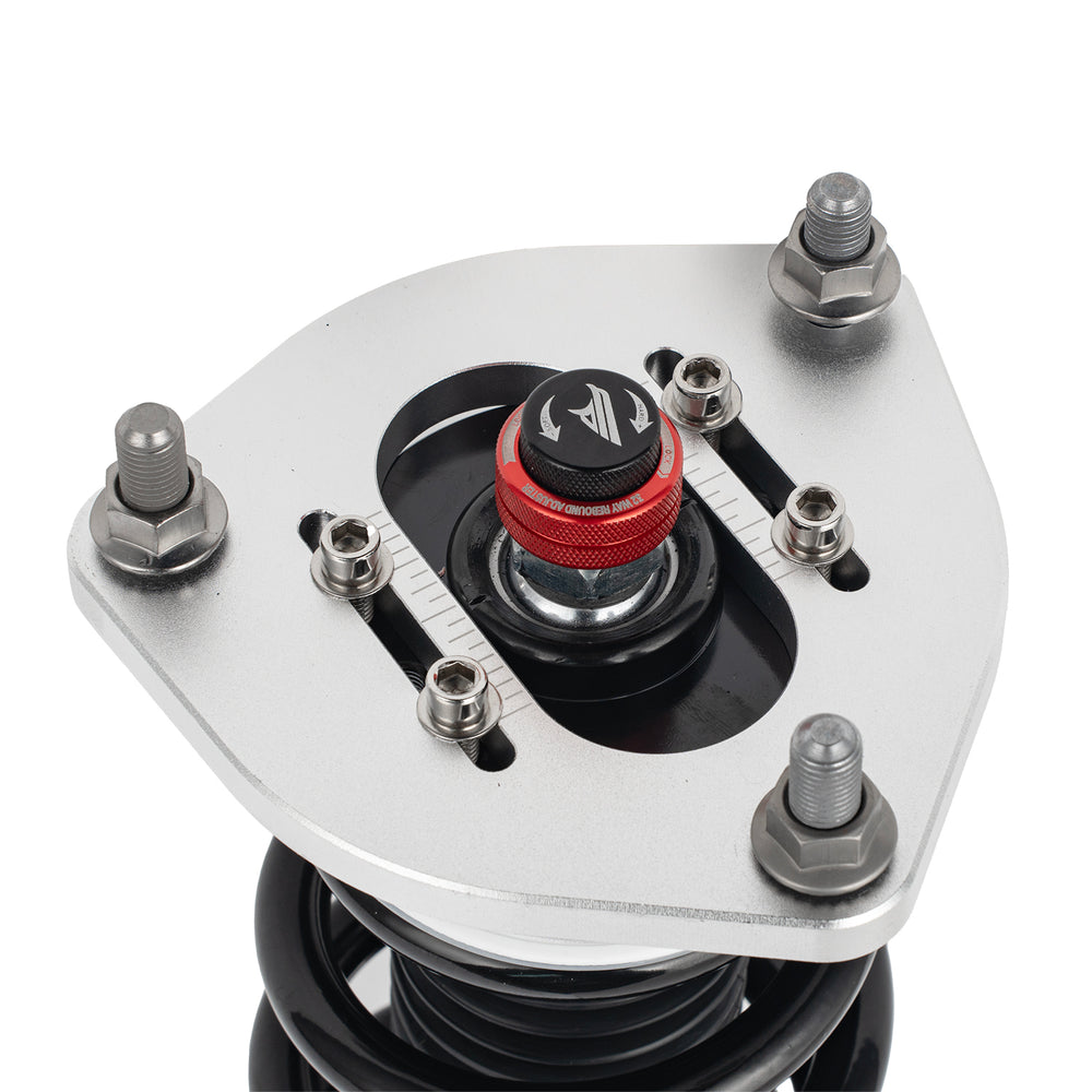 Note: This coilover kit is designed to lower your car by 1"-1.5" compared to the factory height, even at its maximum setting. Please confirm this suits your needs before purchasing.