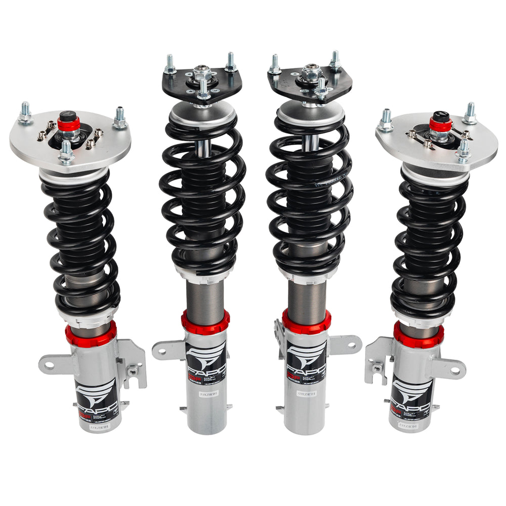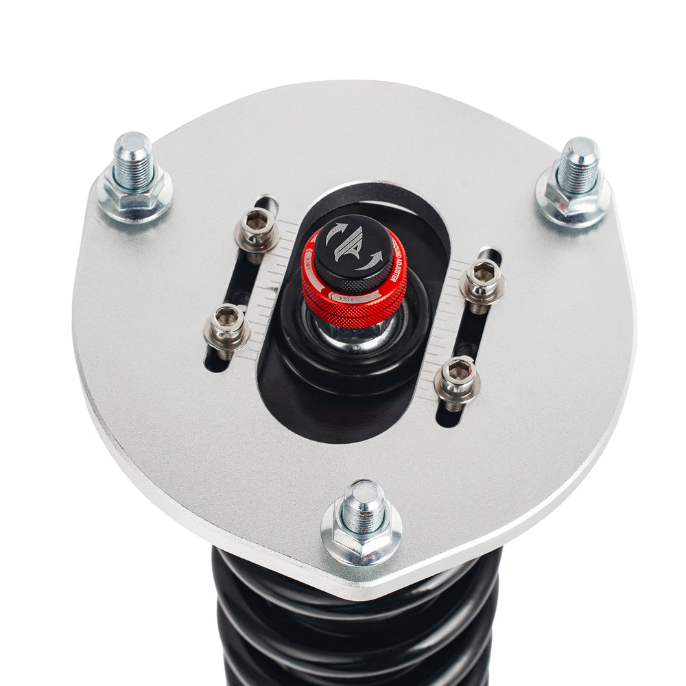 Note: This coilover kit is designed to lower your car by 1"-1.5" compared to the factory height, even at its maximum setting. Please confirm this suits your needs before purchasing.