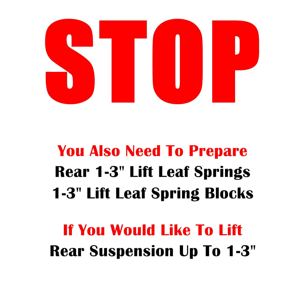 • Front height-adjustable coilover design makes it easy to level your stance or fit larger tires