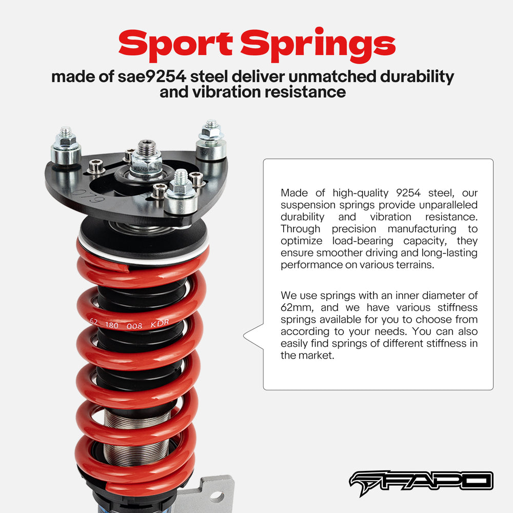 The fit for my 2008 hatchback mazda 3, is perfect!! They make no noises, and I was able to install on my own with just hand tools. Would definitely buy again if I ever needed to.