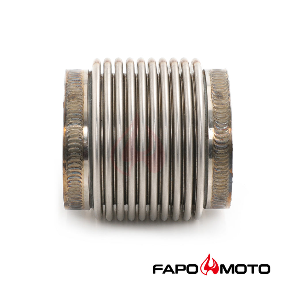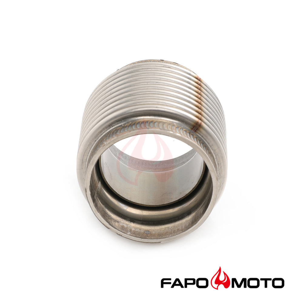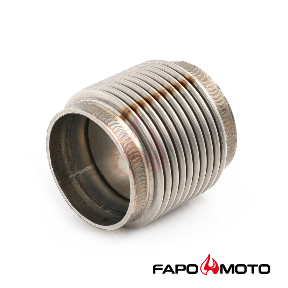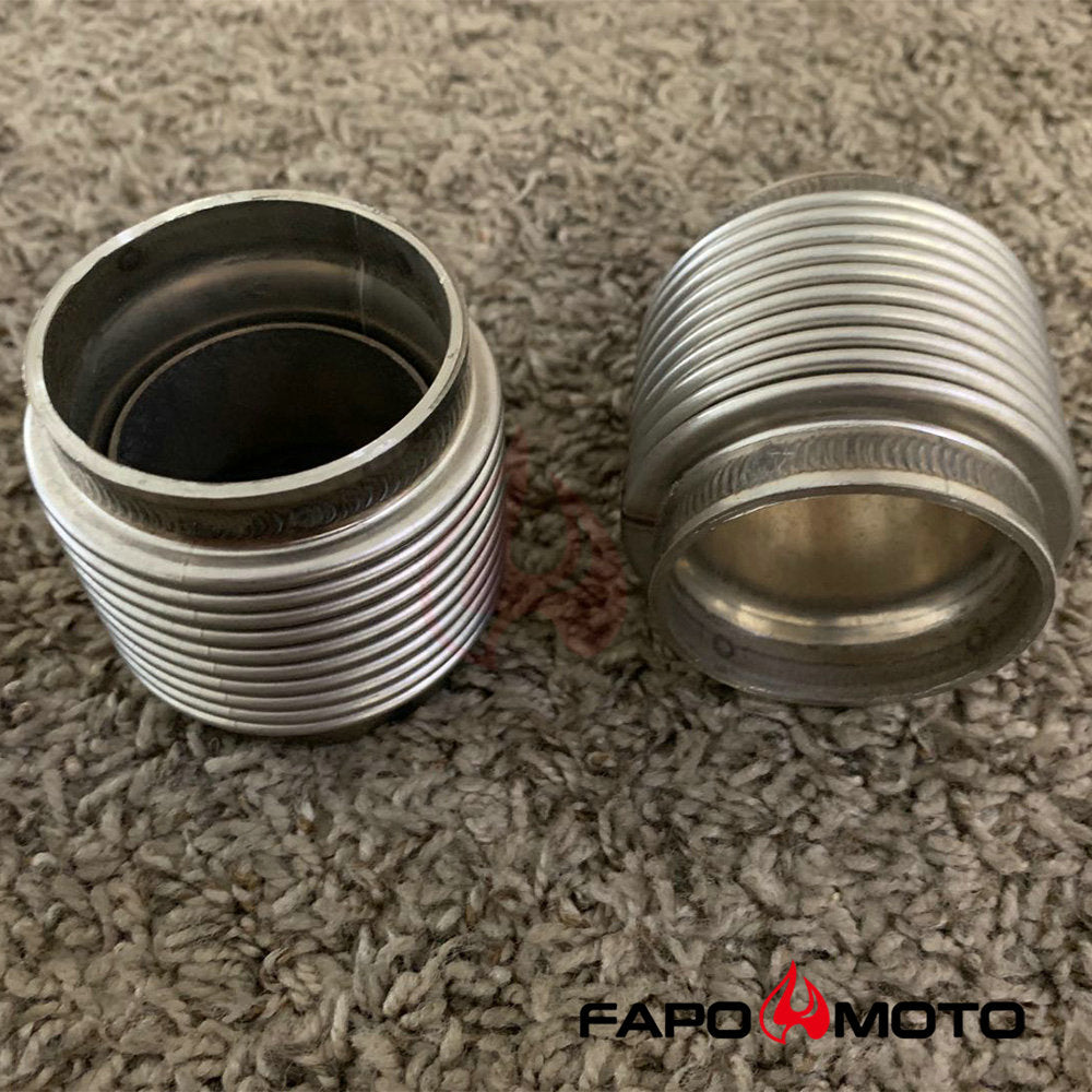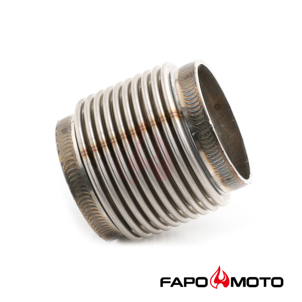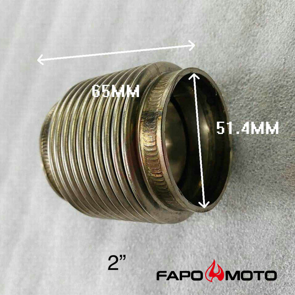 Universal 2" ID 304 stainless steel bellow flex pipe with a 2.55" length, as shown in the photos.