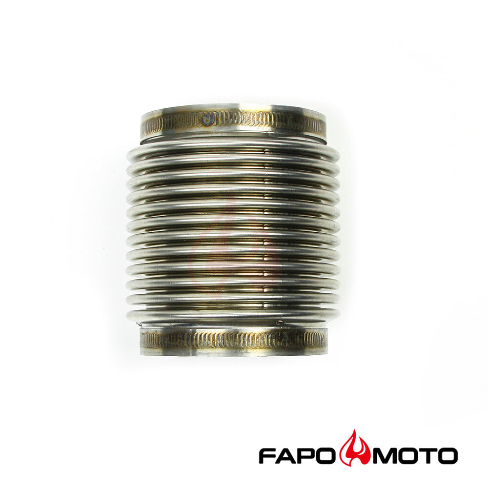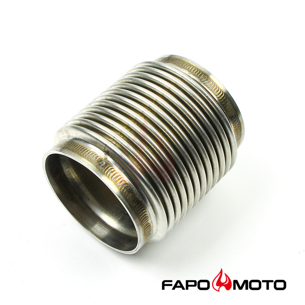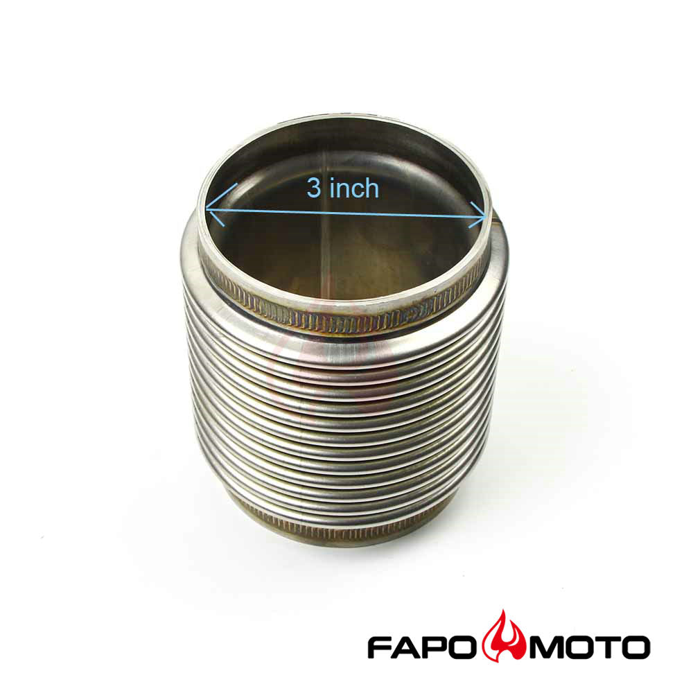Universal 3" ID 304 stainless steel bellow flex pipe with a 4" length, as shown in the photos.