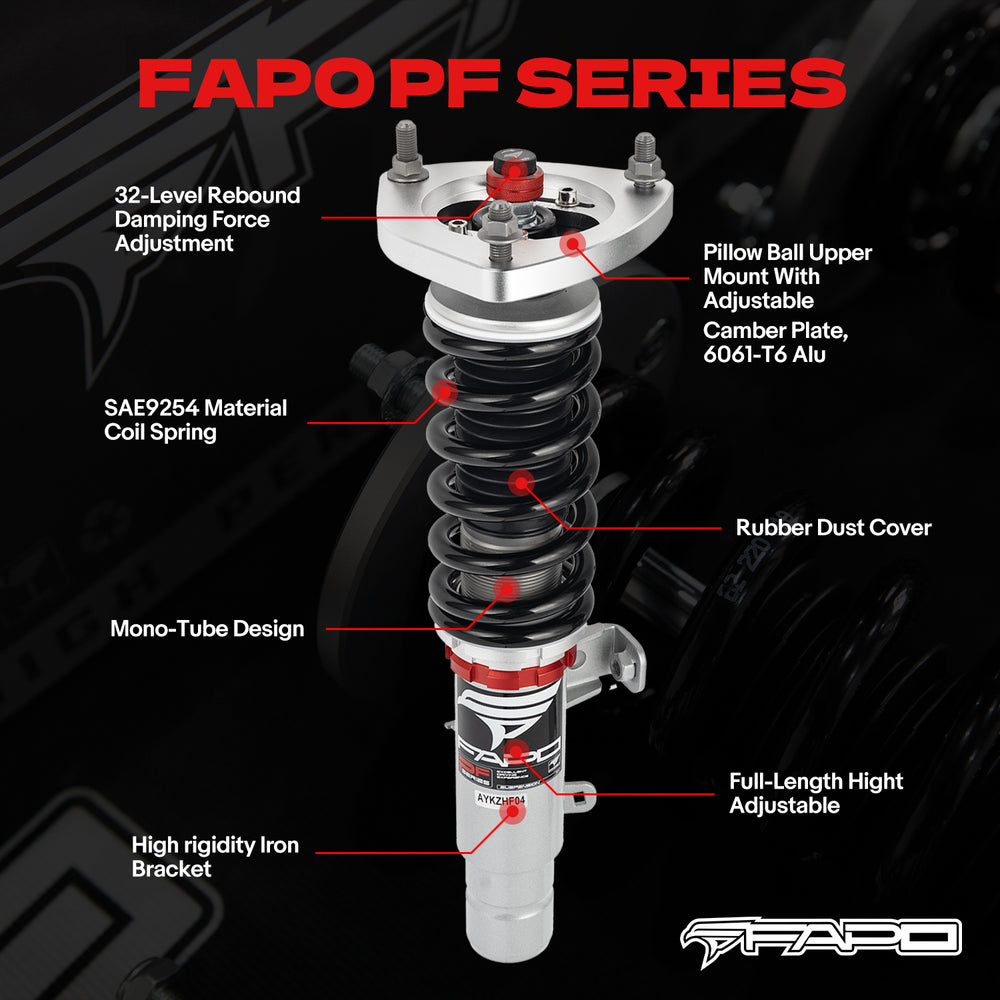 * Note: Our coilover is a lowering kit which will be 1-1.5" lower than factory height even at the maximum setting. Please confirm you want to lower the car before purchasing.