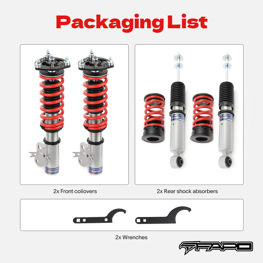 Everything is fine, I can raise and lower the car quite a bit, it's much firmer than the original and you have to be extra careful with big potholes since it only has about 50% of the range of motion of the original ones.