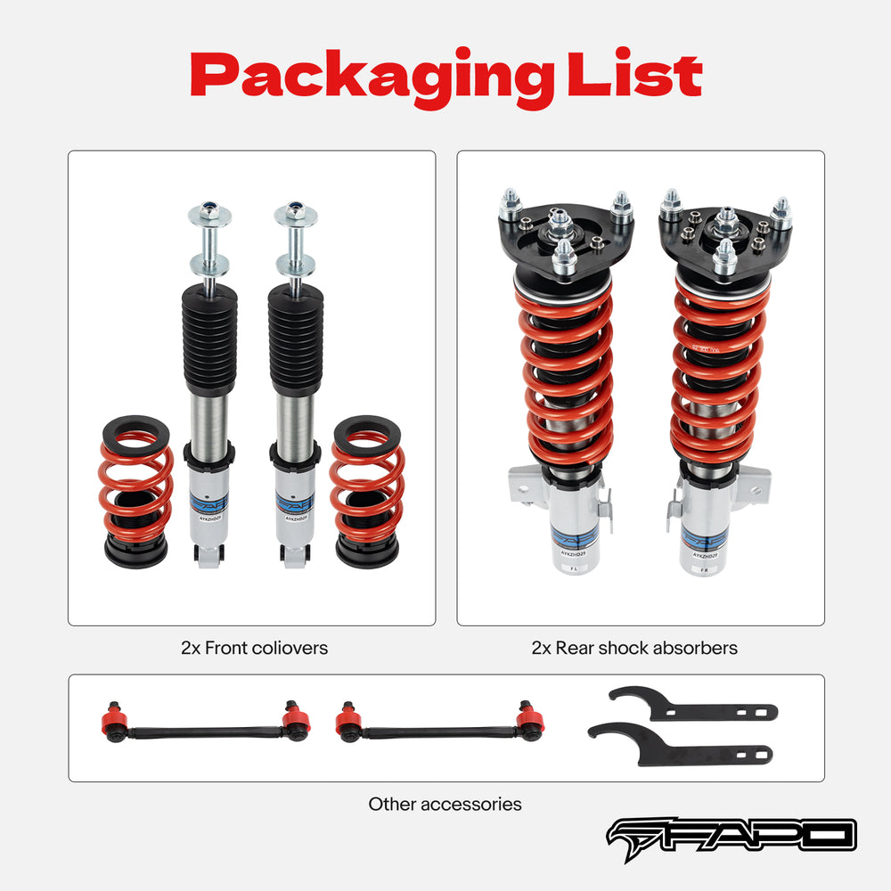 Replaced my worn stock suspension on the 13 Civic. Everything bolted up fine. Ride feels tighter now. No weird noises so far.
