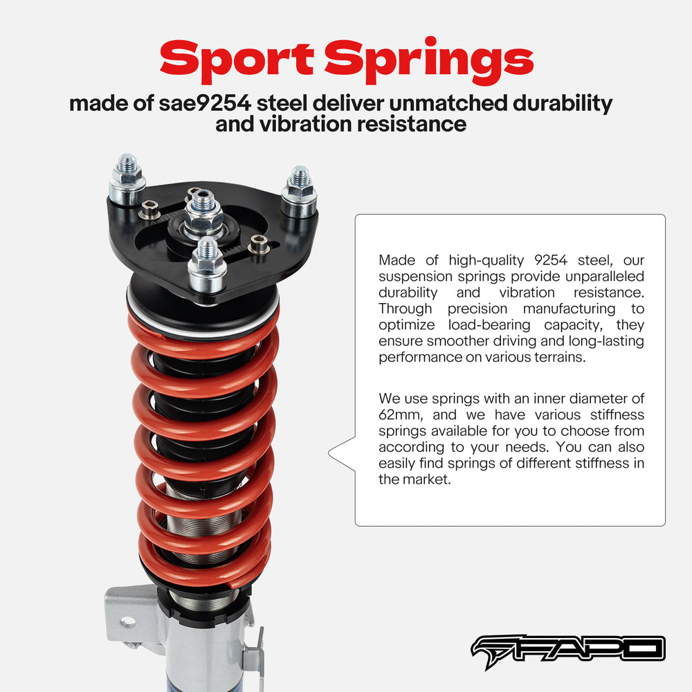 Running these 6 months on my 12 Civic. Firm but absorbs bumps okay. Clears driveways fine after lowering. Solid for the price.