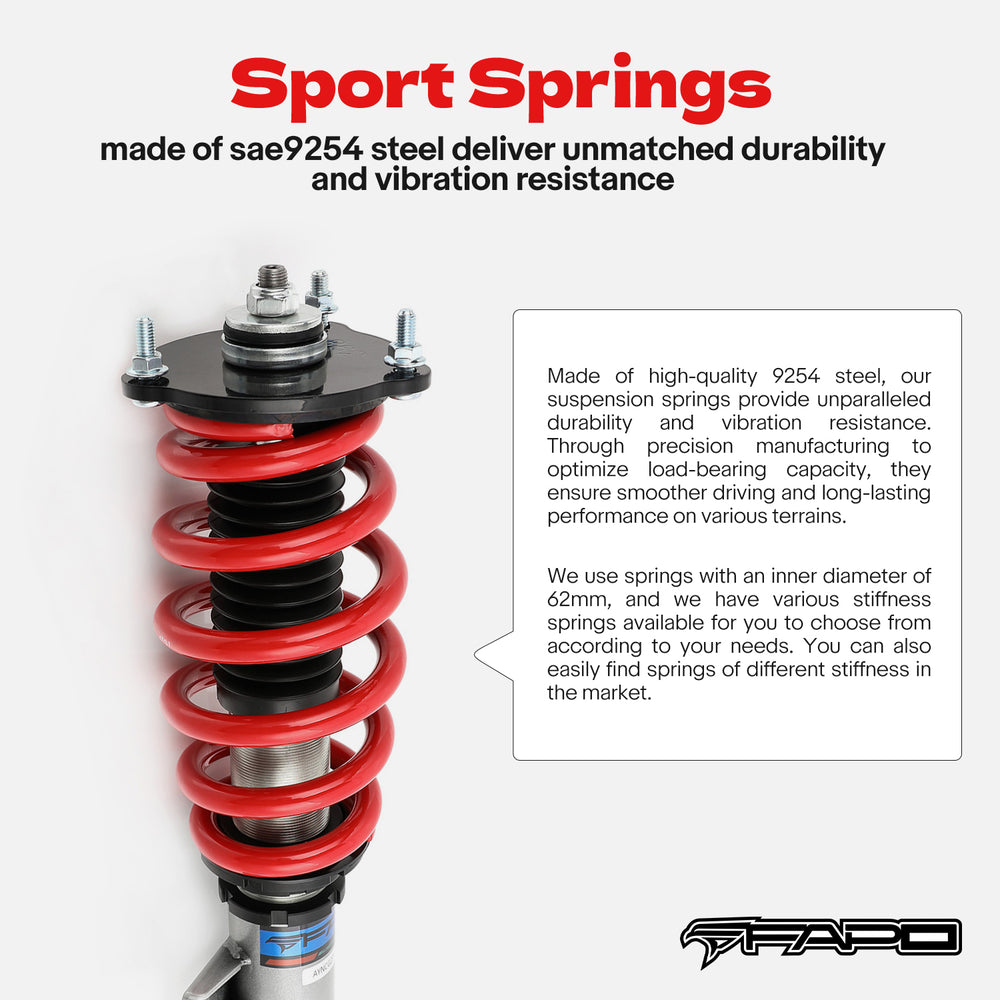 Not only did these make my car look way better by lowing it properly, but I was amazed at how well it handles now. The ride is awesome. I really like the adjustable dampers as well - it makes a considerable difference changing the ride from smooth to tight. Excellent product and great value!
